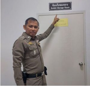 พร้อมด้วยเจ้าหน้าที่ที่เกี่ยวข้อง ร่วมตรวจสอบของกลางเทียบกับเลขคดี เพื่อป้องกันข้อผิดพลาดและไม่ให้ของกลางถูกในไปใช้ประโยชน์อื่นใด
