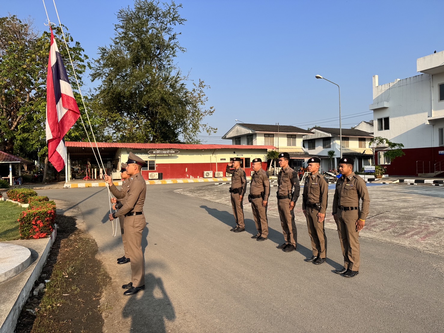 เรียกแถวสายตรวจรถยนต์ผลัดใหม่ สิบเวร วิทยุ นสต.ฝึกราชการ ตรวจจำนวน เคารพธงชาติ กล่าวอุดมคติและคำปฎิญาณตน
