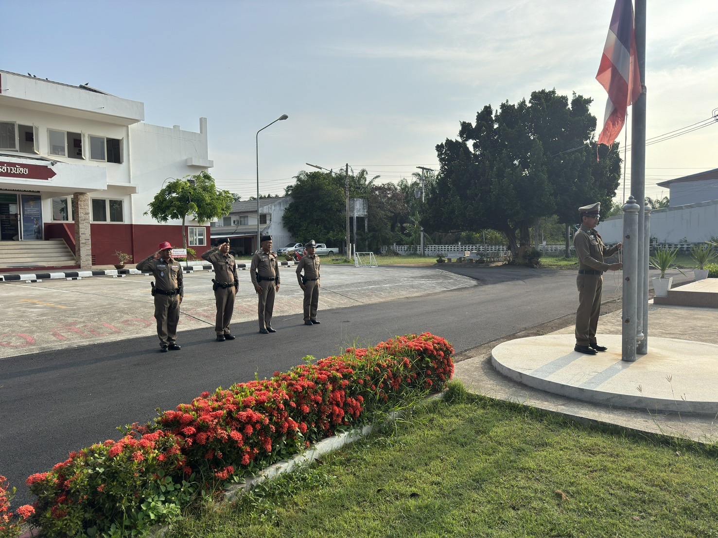 เรียกแถวสายตรวจรถยนต์ผลัดใหม่ สิบเวร วิทยุ ตรวจจำนวน เคารพธงชาติ กล่าวอุดมคติและคำปฎิญาณตน