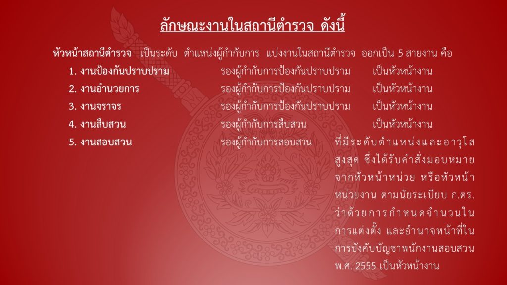 อำนาจหน้าที่ของแต่ละตำแหน่งในสถานีตำรวจ