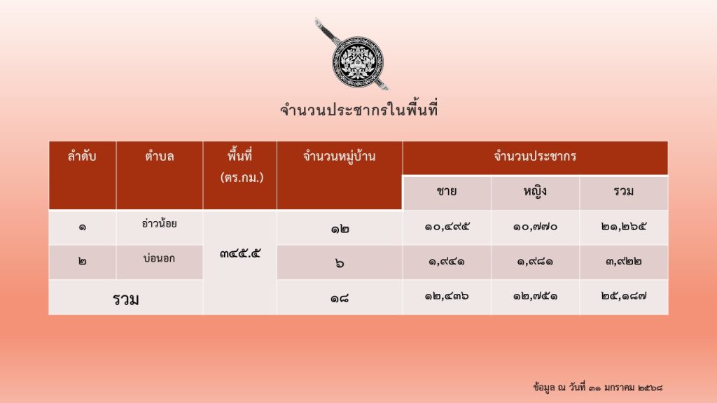 จำนวนประชากรในพื้นที่